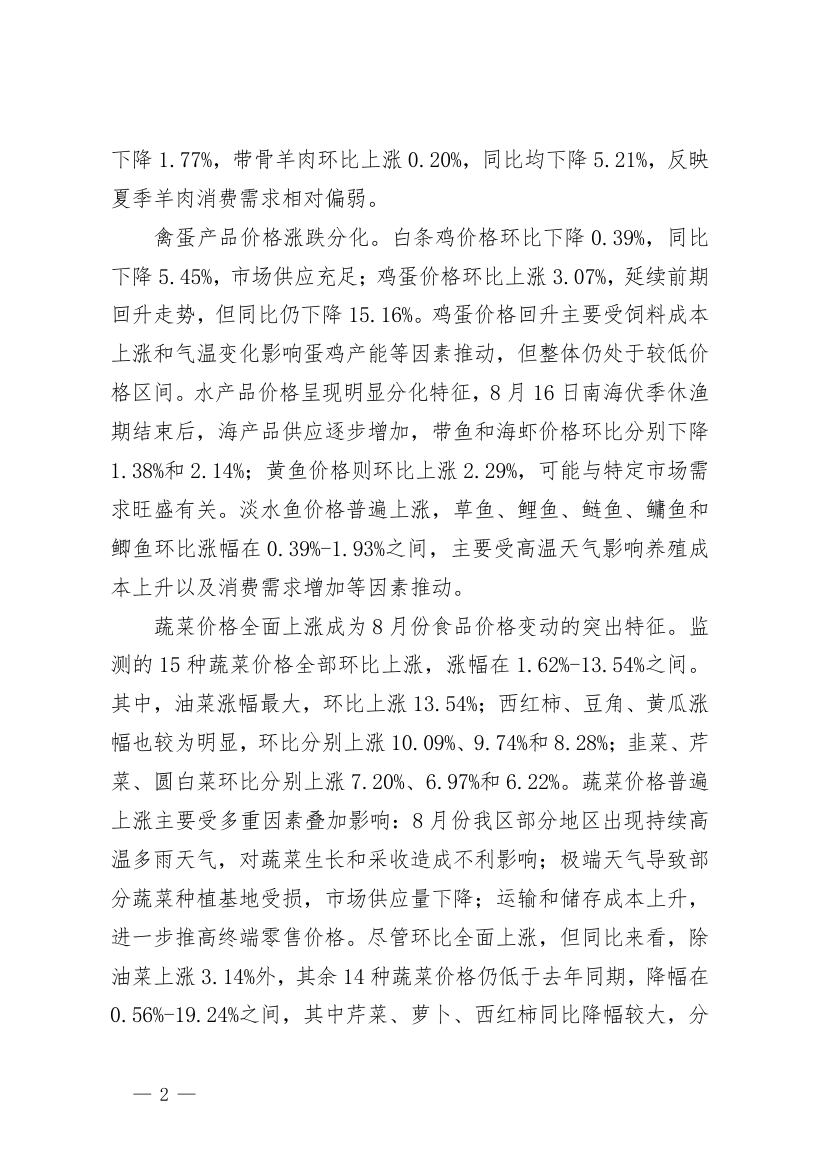 广西2025年8月份食品价格运行分析